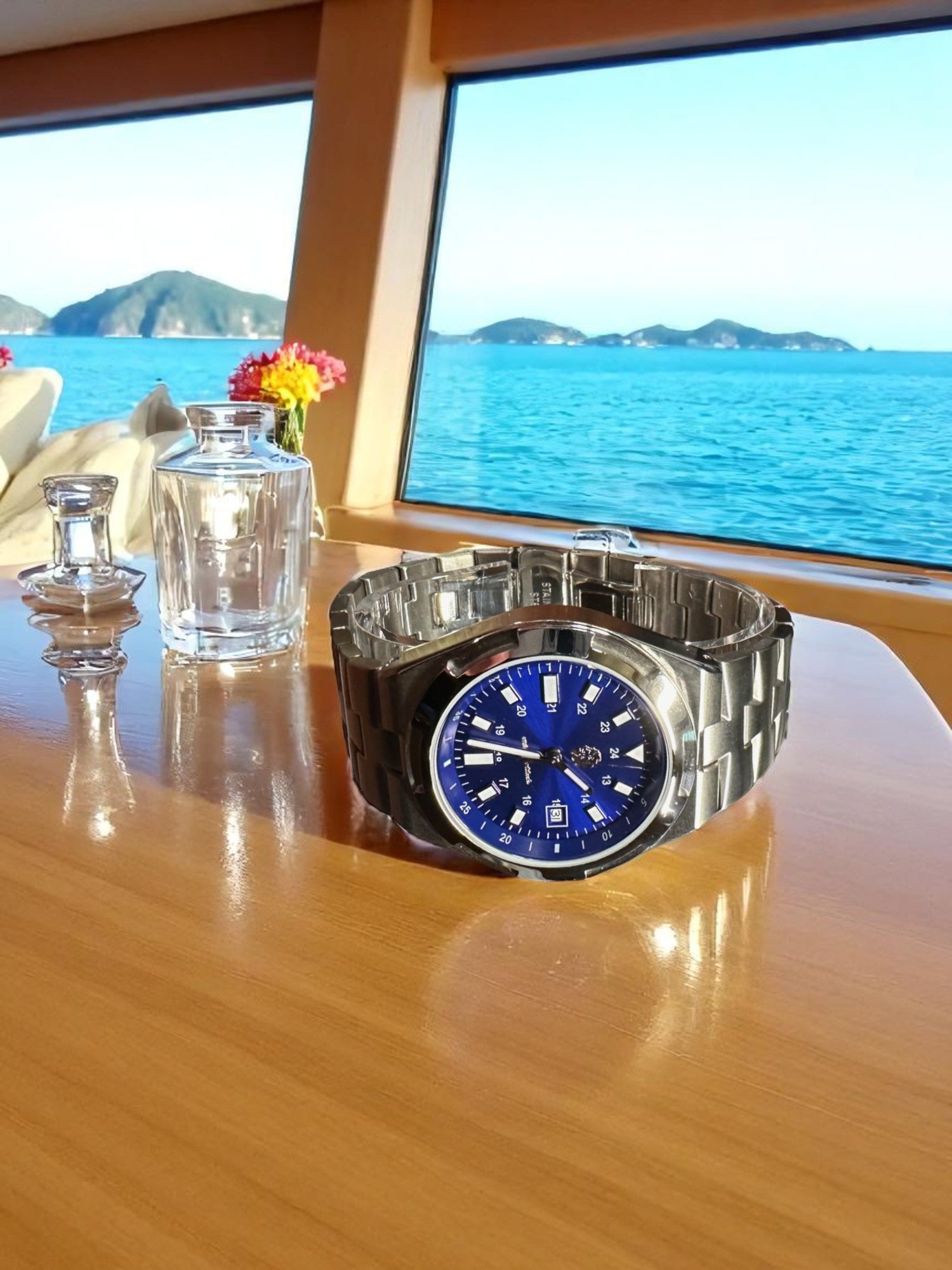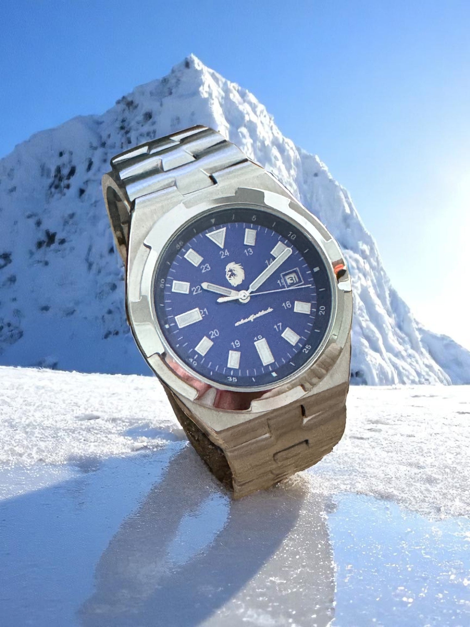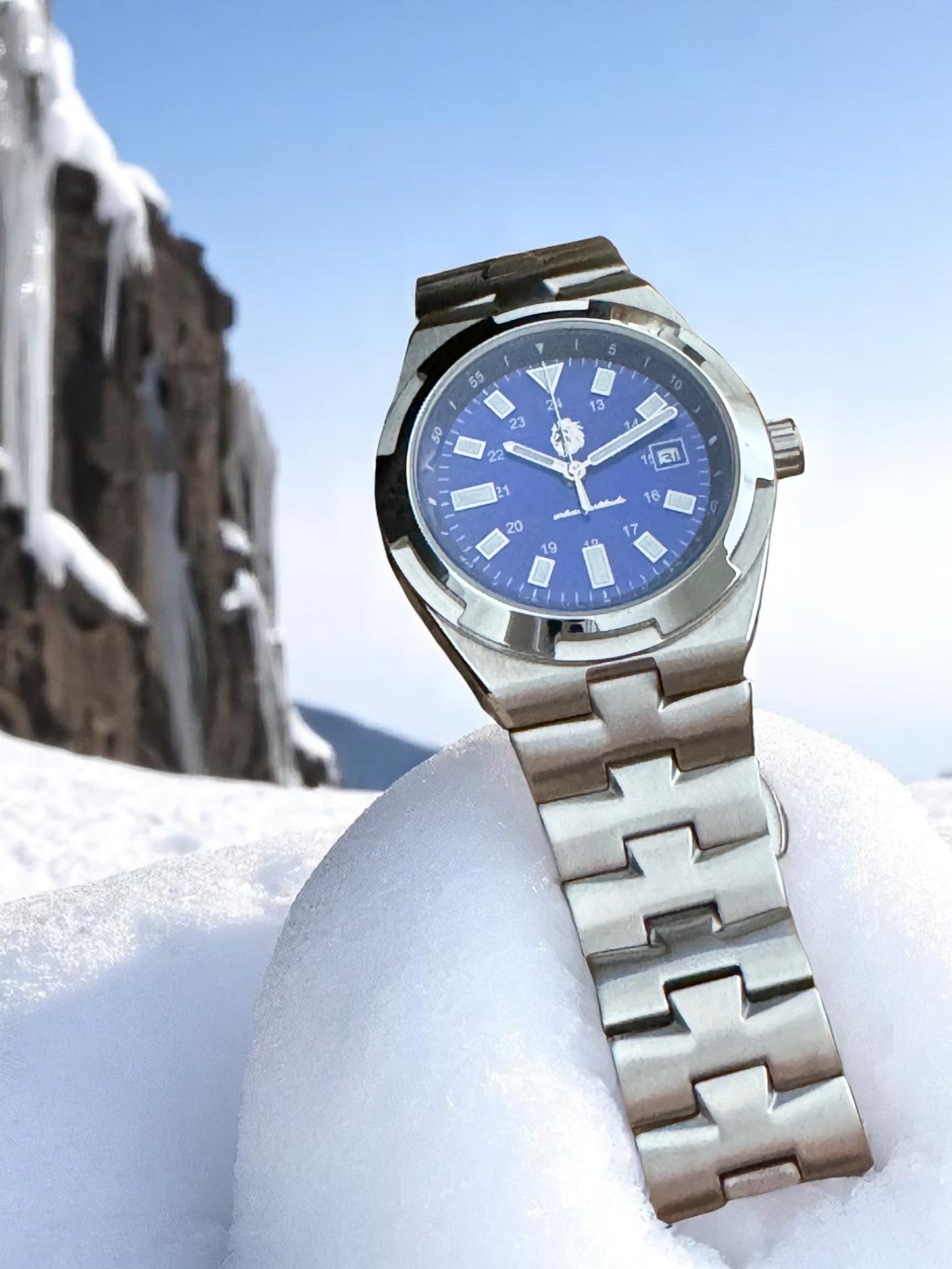The Mariner is built for those who cross both oceans and time zones—engineered to endure and designed to inspire. Its deep blue dial captures the essence of open water and clear skies, while the brushed stainless steel case and bracelet reflect a classic aesthetic rooted in strength and precision.