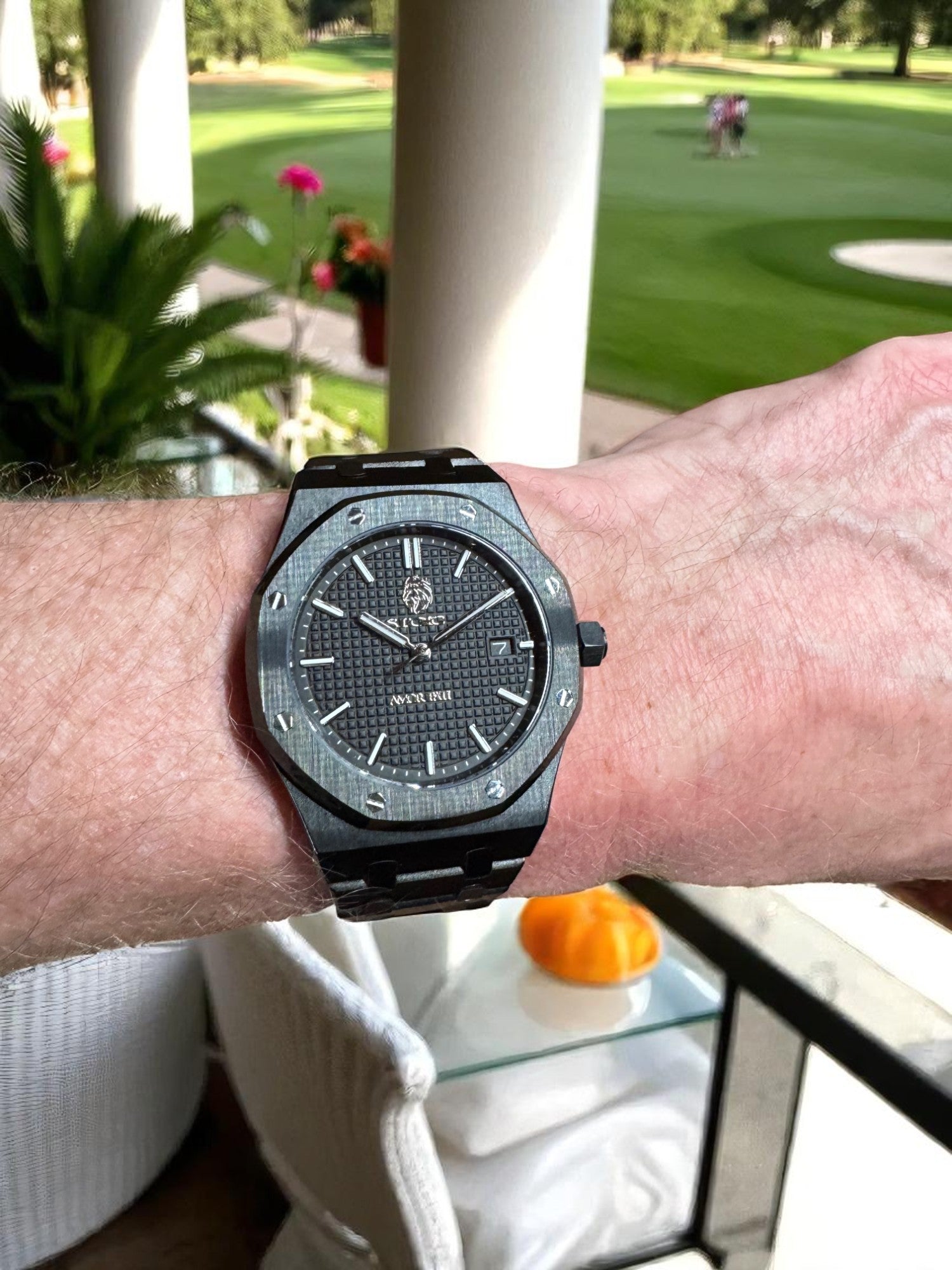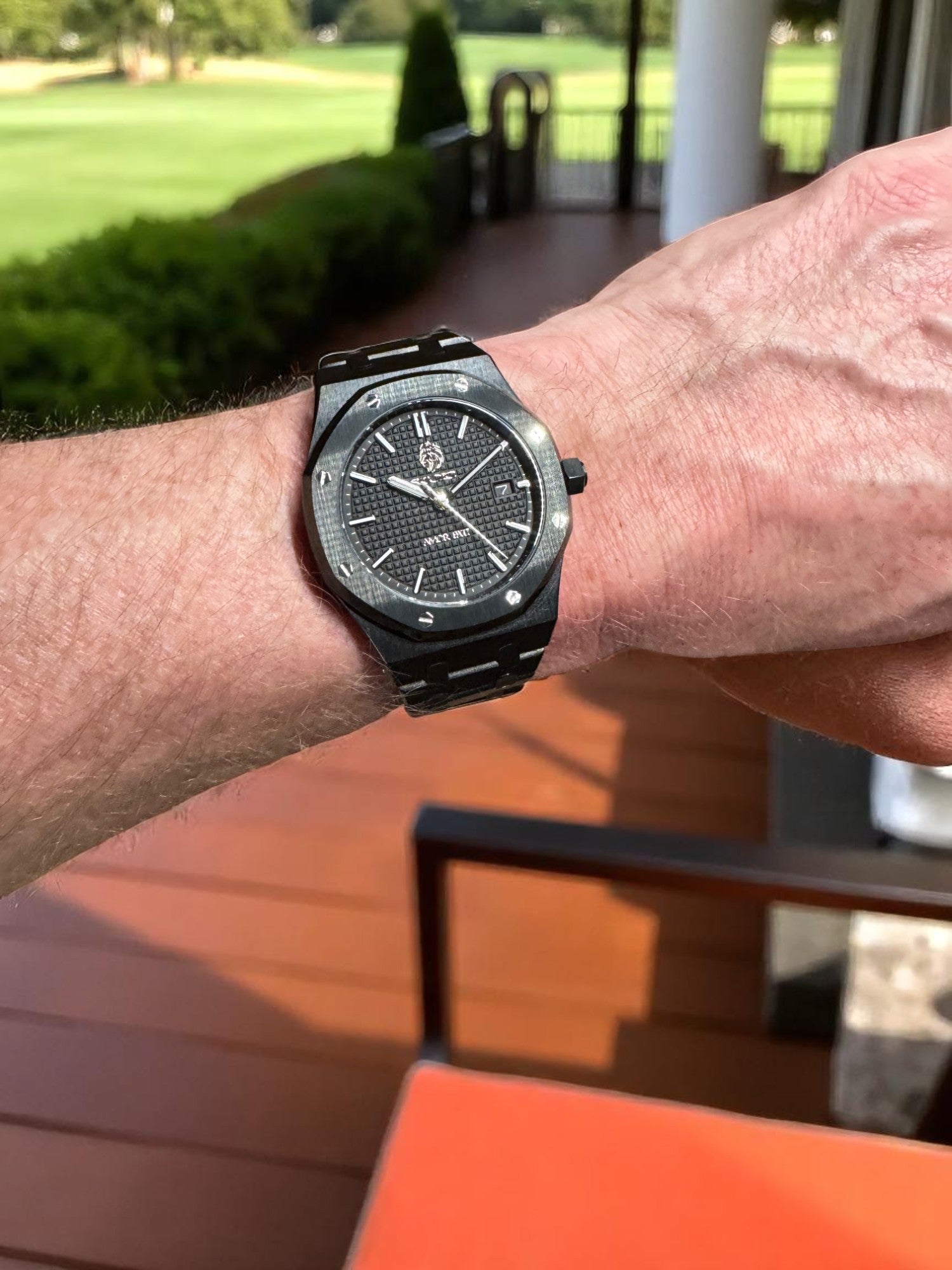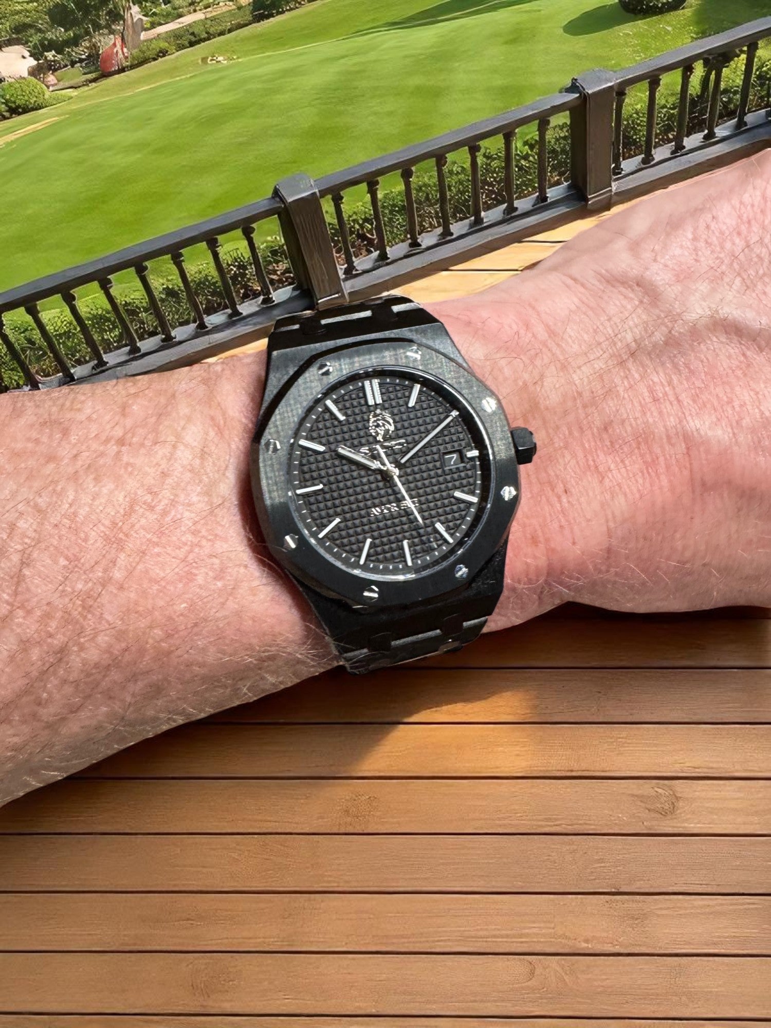 Dial: Waffle-textured black with applied indices