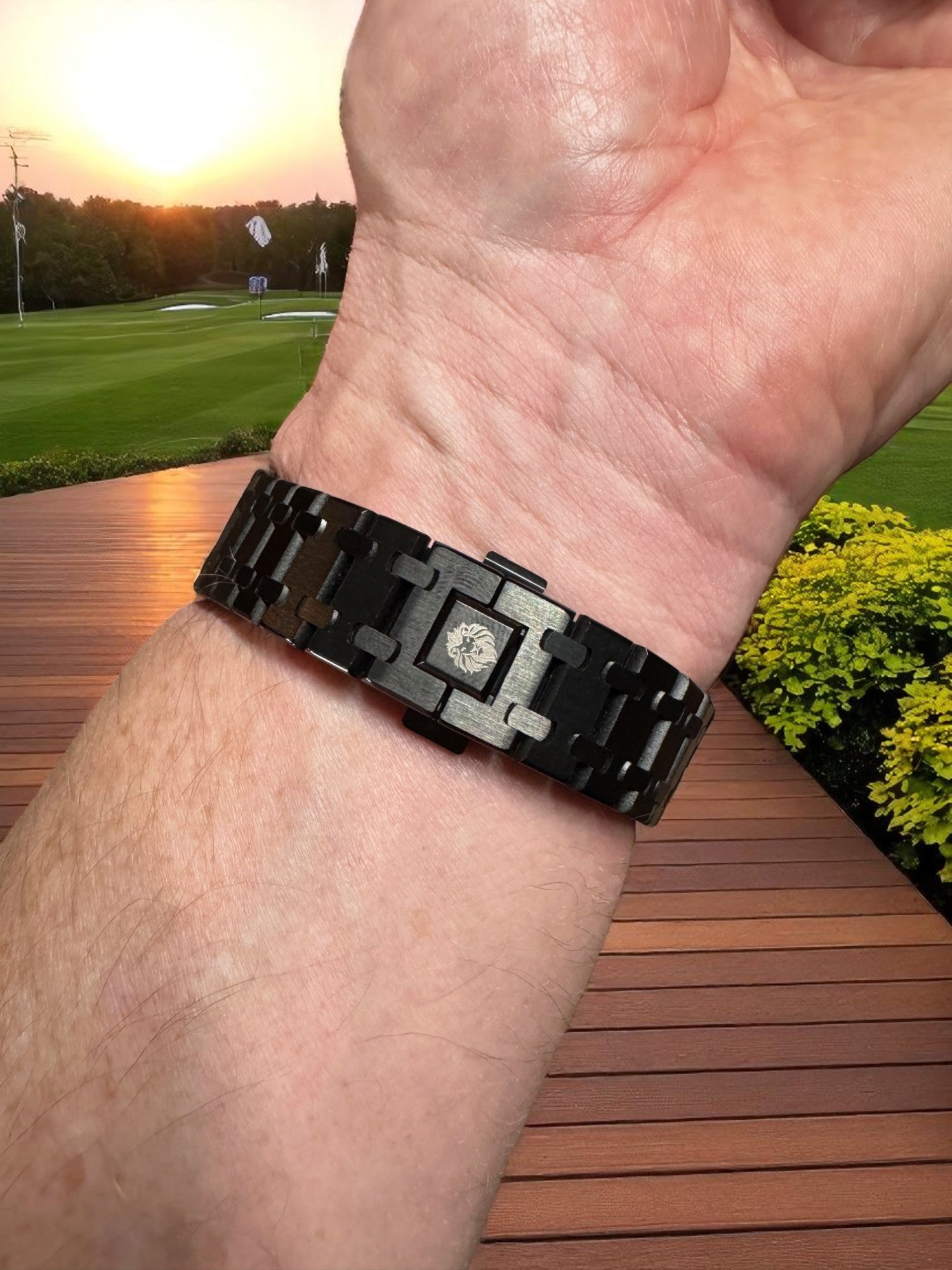 Case & Bracelet: Brushed black stainless steel, integrated design