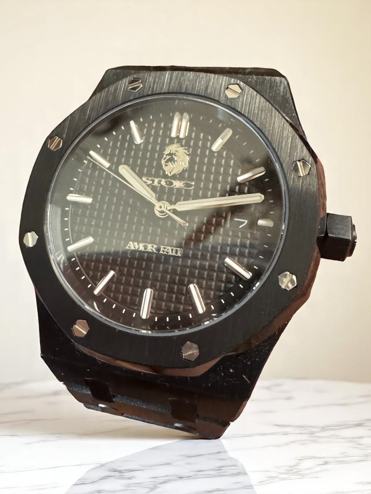 The Obscura embodies the quiet strength of those who don’t seek attention—but command it. With its deep black waffle-textured dial, brushed steel bezel, and integrated bracelet, this timepiece speaks the Stoic language of restraint, precision, and presence. Every detail is purposeful—from the luminous indices to the minimalist date window—offering clarity in a world of noise.