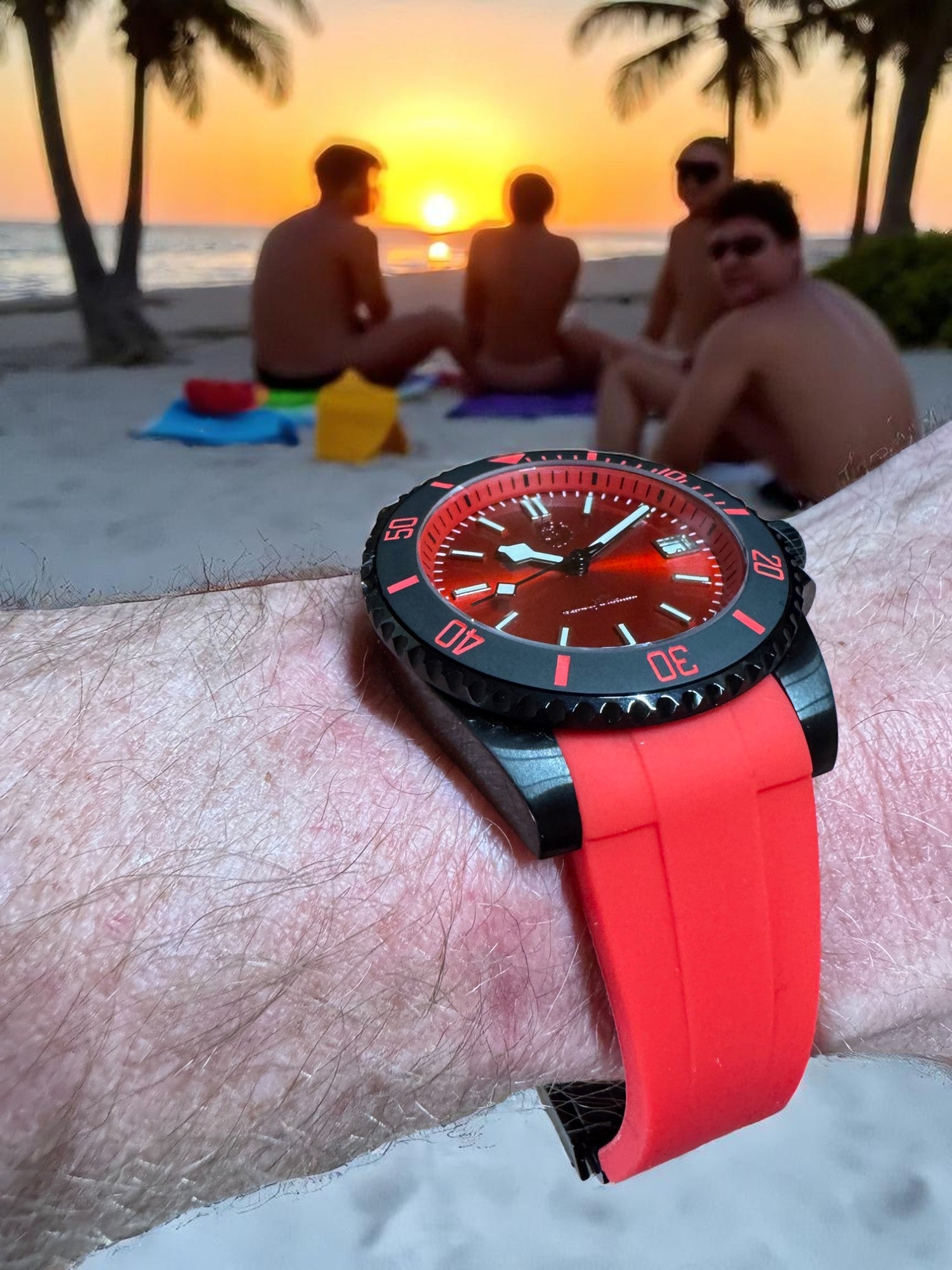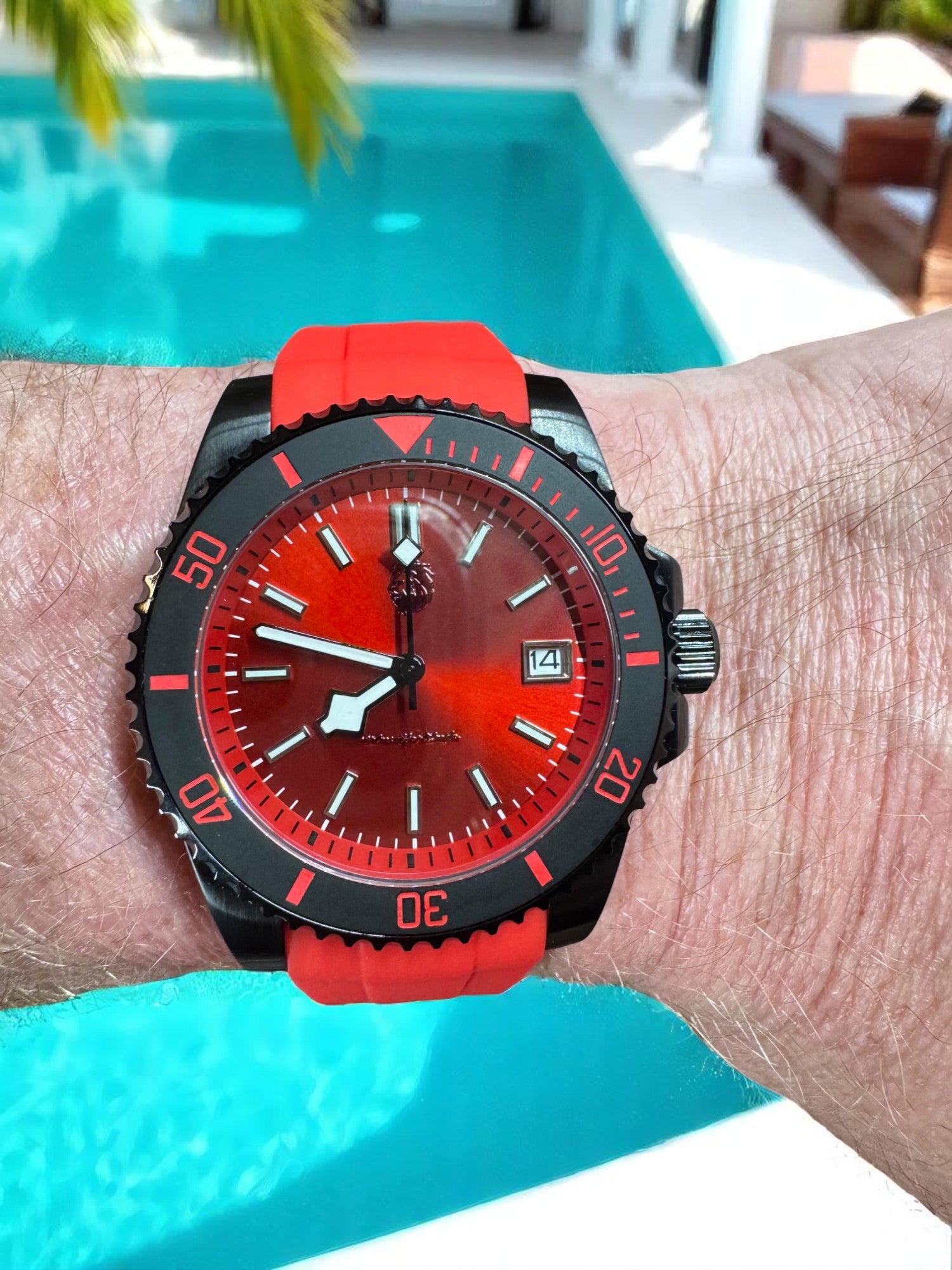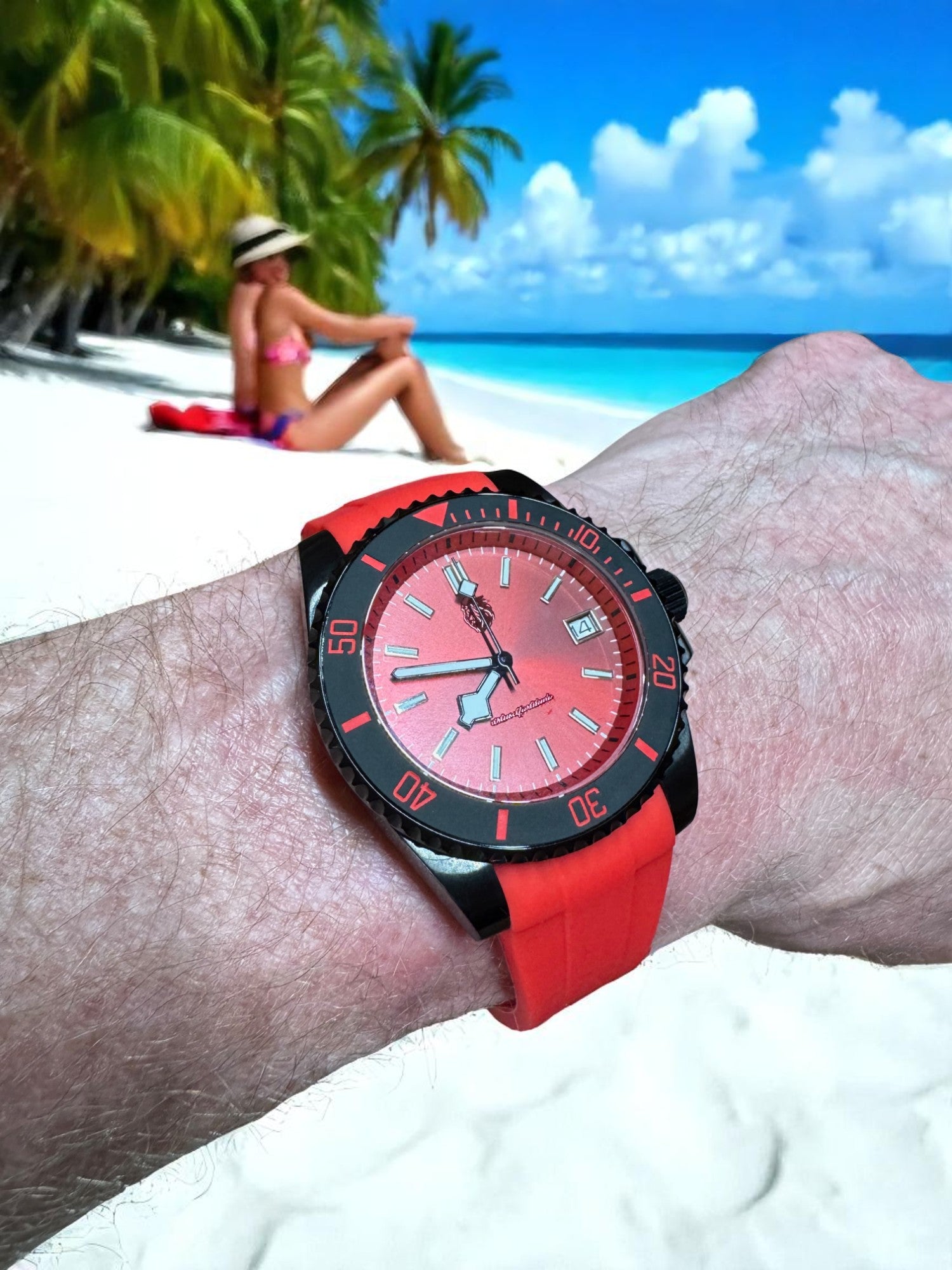 Crafted with a durable automatic movement, the Pyra thrives under pressure, whether you’re diving into surf or navigating life’s daily challenges. The luminous indices and bold hands ensure visibility in all conditions. This isn’t a watch that whispers—it declares.