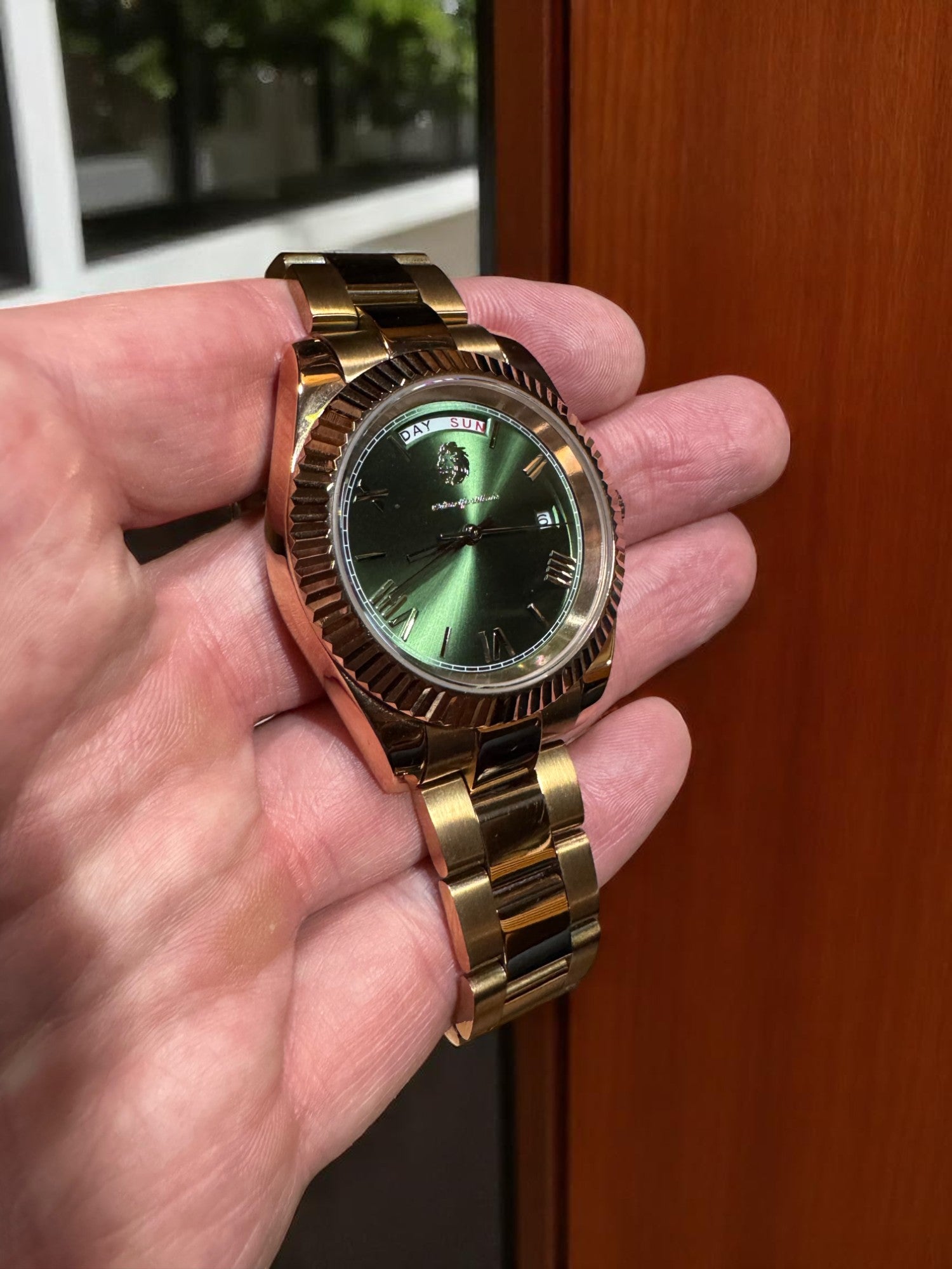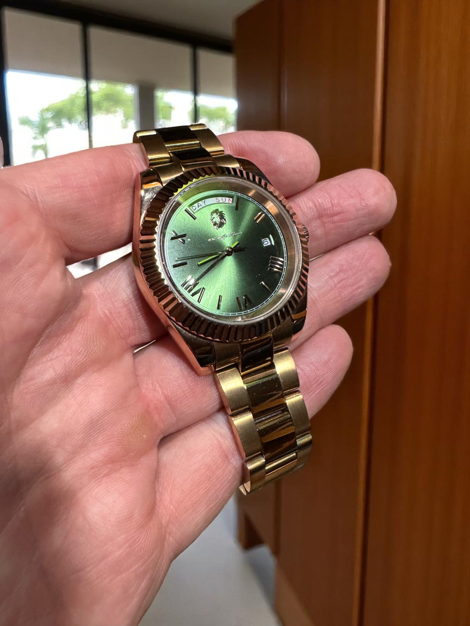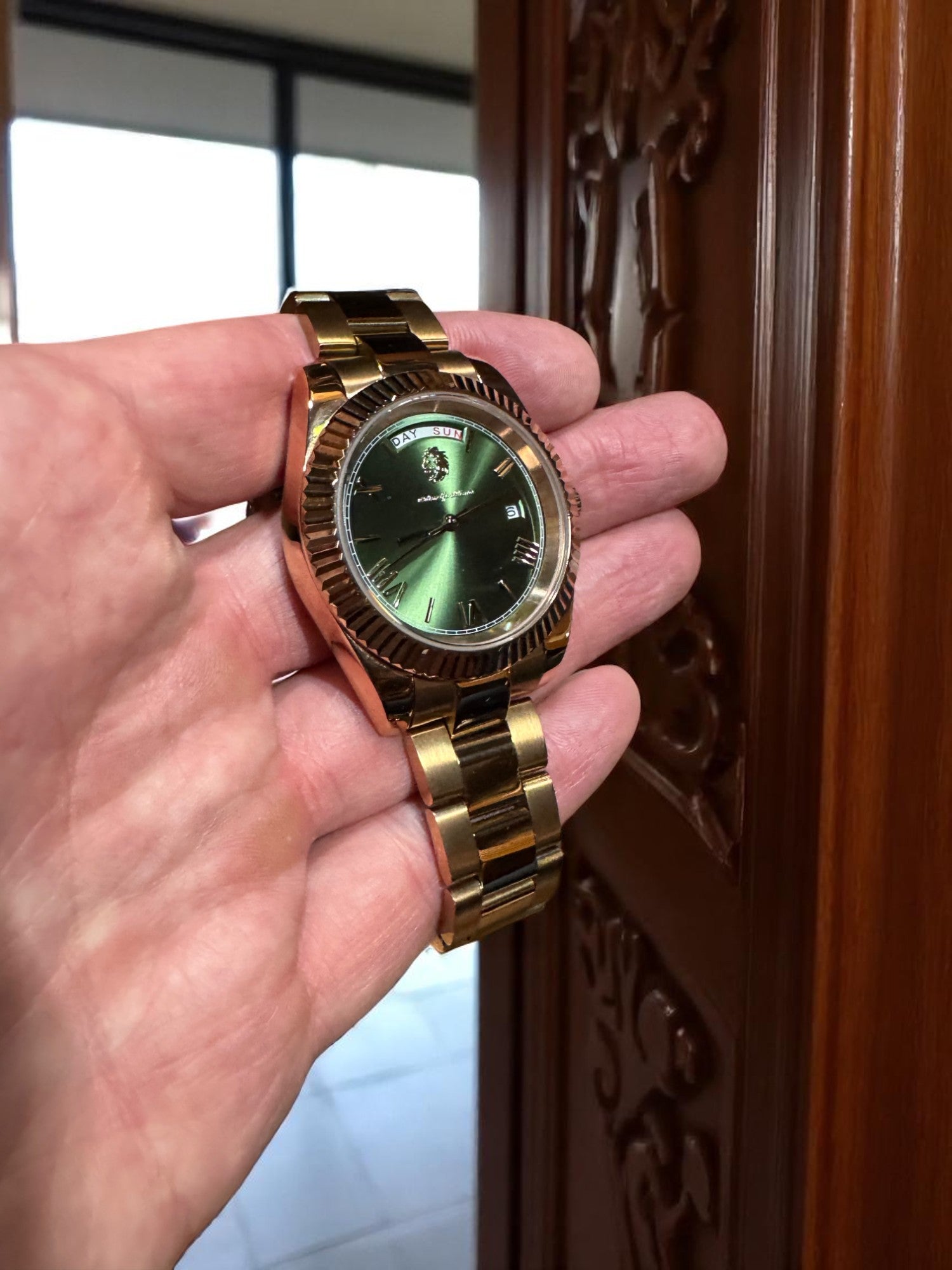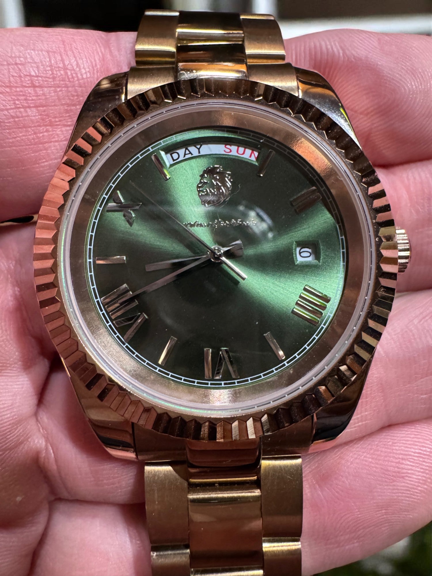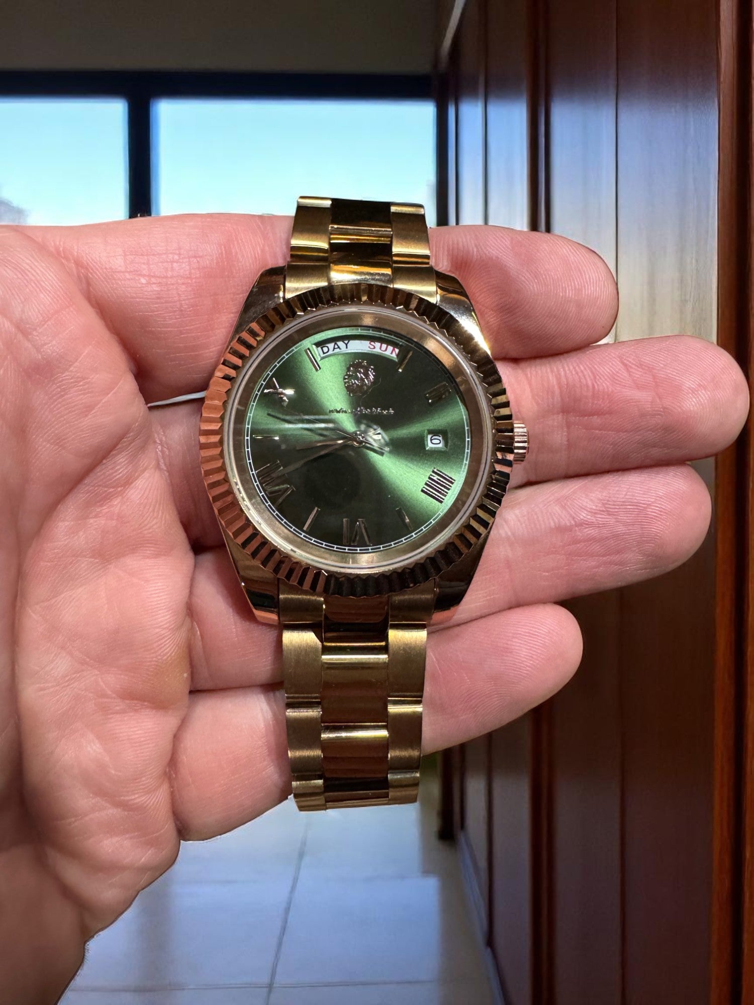 The Regulus is a timepiece of dignified strength and quiet power—named after the brightest star in Leo, a symbol of leadership, courage, and clarity. Featuring a sunburst emerald green dial housed within a polished rose gold case and fluted bezel, the Regulus radiates classical elegance with modern resolve.