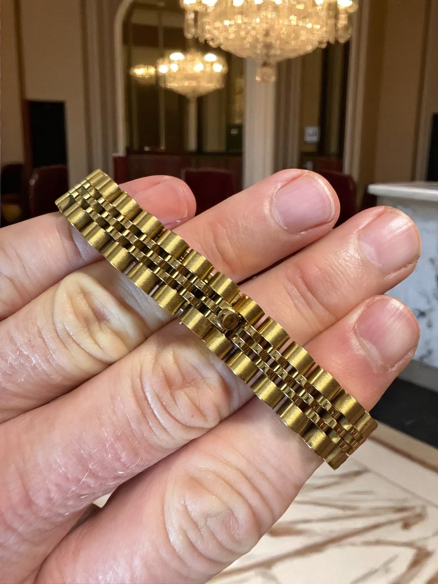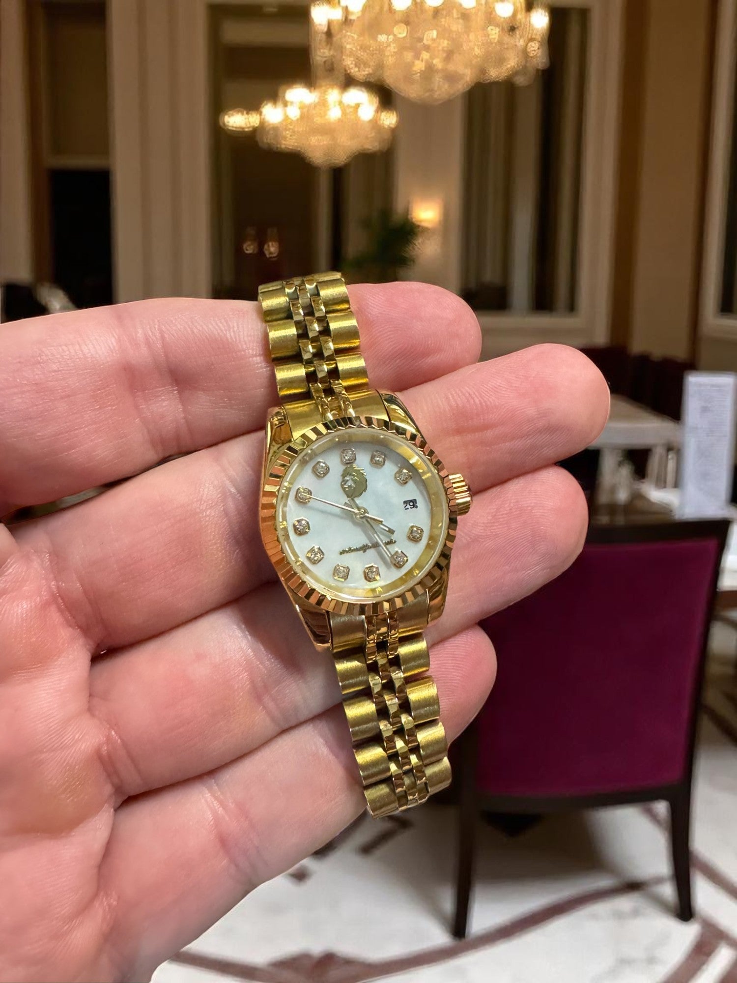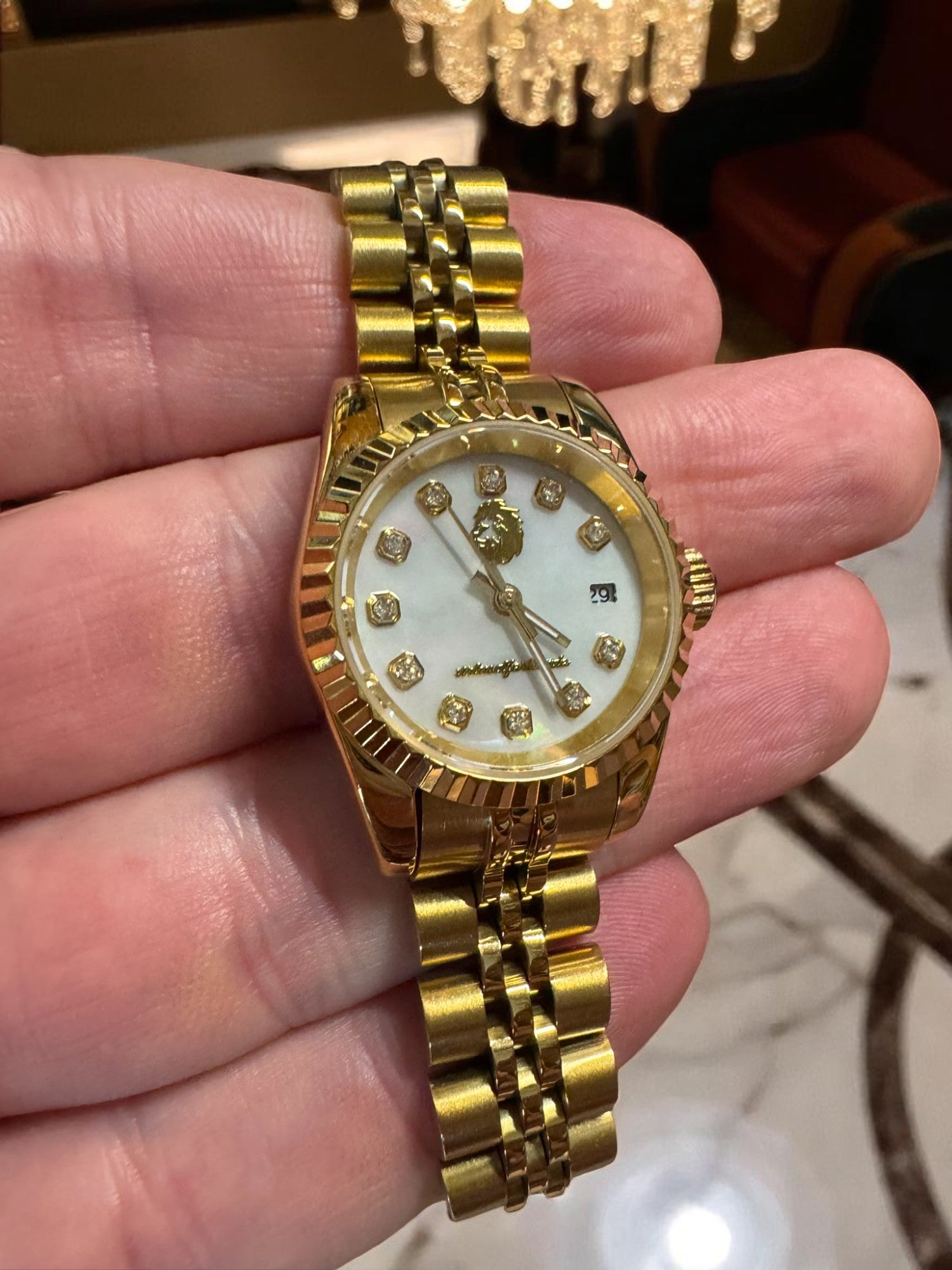 The Stoic Grace is a timeless tribute to elegance and inner strength. Crafted for women who embody resilience and refinement, this timepiece features a radiant mother-of-pearl dial adorned with twelve brilliant-cut crystal hour markers. The polished gold-tone case and Jubilee-style bracelet deliver both opulence and comfort, while the fluted bezel adds a touch of classic sophistication.